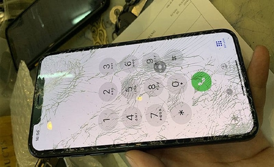Trường hợp 1:Chiếc điện thoại iPhone 11 khi màn hình bị va đập dẫn đến bể lớp kính bên ngoài , tuy nhiên màn hình hiển thị vẫn hiển thị bình thường , cảm ứng còn dùng được ⇒bạn chỉ cần thay mặt kính iPhone 11